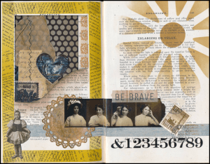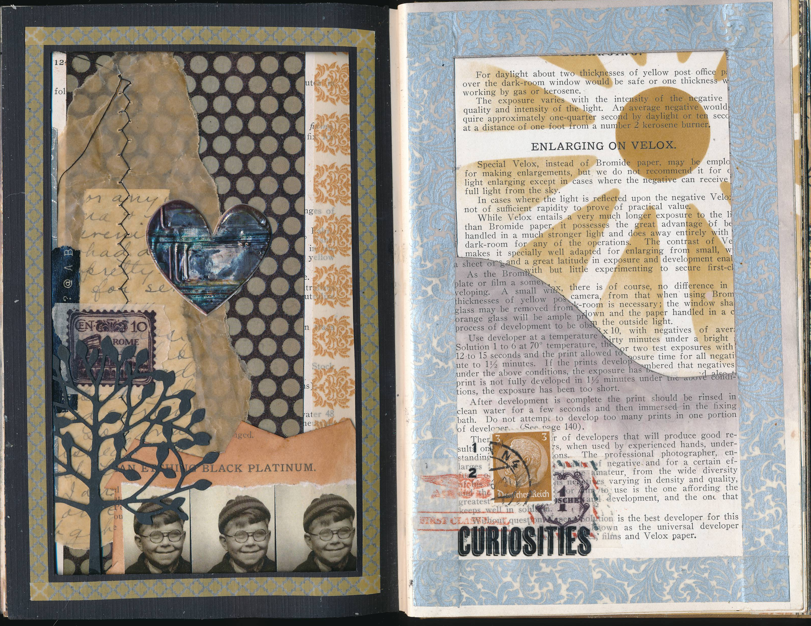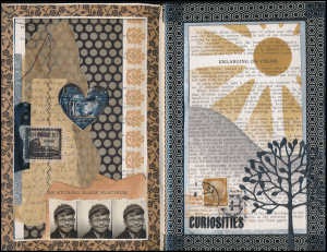 The trick in creating this type of page is to plan it ahead of time so the layers will all work together. I wanted each layer to look good on both the left and right side of the page, so that no matter which page you’re looking at, it looks attractive across the whole spread.