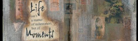 “Life isn’t a matter of milestones, but of moments.” The background for this page was created using many layers of acrylic paint layered with 3D Stemple. I used collage to […]
